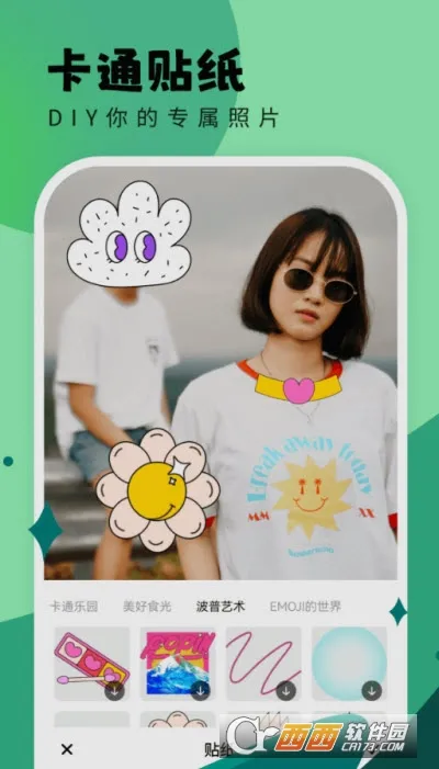 提供丰富多样的贴纸,可让照片更加个性化,快速提供各种功能。