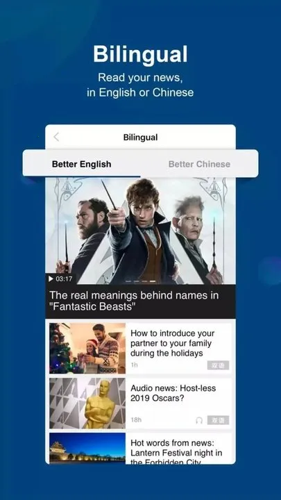双语阅读便捷:软件为双语版,能自行切换国内版和英语国际版,双语栏目阅读英语新闻省时省力,轻松提高英语水平。