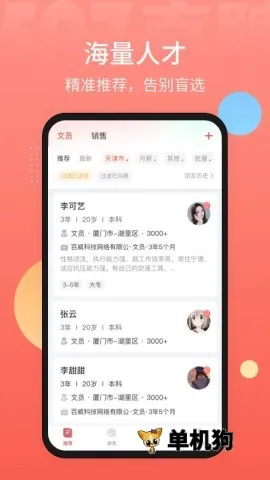 3. 便捷操作:界面设计清晰、人性化,快速投递简历功能配合高效反馈机制,缩短沟通周期,还有智能简历推荐、多维筛选工具等,即使对APP操作不熟悉也能快速上手。