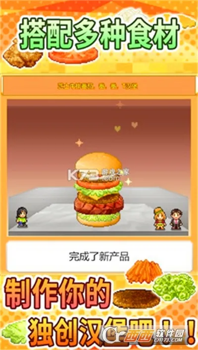 想经营一家热闹的汉堡店吗?那就来试试创意汉堡物语吧!这是一款超有趣的经营模拟游戏。在游戏里,你能从小镇一角的小小汉堡店起步,自由组合各种食材,比如炸鱼排、塔塔酱、培根、生菜、荷包蛋等等,为客人端上独创的美味汉堡,搭配方式无穷无尽。你还可以解锁不同食物,研发独门调料,让汉堡更美味。随着店铺经营走上轨道,还能开展多家分店,挑战战胜知名竞争店铺。游戏有着丰富剧情和任务系统,边提升经营能力,边体验有趣情节。画面是可爱的卡通风格,延续开罗家族经典像素风,人物和场景栩栩如生。在这里,你可以尽情发挥创意,设计汉堡店风格和菜单,招聘员工,扩大店铺规模,解锁更多类型汉堡,满足不同顾客需求,打造繁荣昌盛的汉堡连锁店,快来下载开启你的汉堡店经营之旅吧!