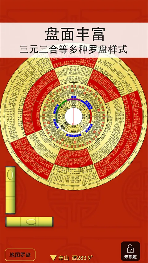 2. 应用内包含三元盘、三合盘、综合盘、玄空飞星、金锁玉关等多种传统罗盘样式,样式丰富多样,满足不同用户对传统罗盘的探索需求。