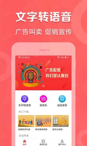 叫卖广告录音2025最新版本是文字转语音合成配音软件,用智能AI拟人技术将文本转化为真人语音。有多种主播音色,覆盖多场景,功能丰富,如文本转语音、添加背景音乐等,还能导出多种格式,操作便捷。
