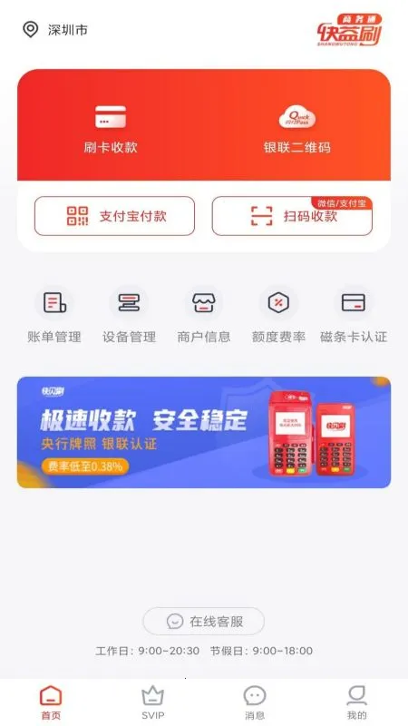 要是遇到 app 打不开的问题,可能是网络或软件本身的小故障。你可以检查下网络连接,或者尝试卸载重装。它的设备管理功能能轻松添加各种收银机具;商户信息功能方便编辑保存详情;刷卡收款功能便于向顾客收款;账单管理能查看各项交易明细;磁条卡认证可处理磁条卡信息;开通 SVIP 还有专属权益。总之,快益刷商务通能解决商户收款管理的诸多问题,带来高效便捷的收款体验。