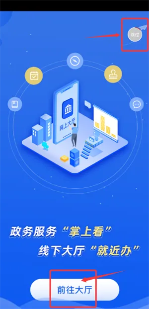 2、可跳过引导页后点击"进入大厅"按钮,直接访问相关服务功能区。