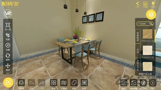 1. 720度全景DIY换砖:用户能通过上传房屋模型图或拍照获取房间样式,在软件中自由选换瓷砖,实时查看装修效果图,感受瓷砖在空间中的变化。