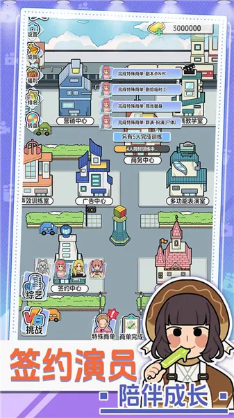 2、演员个性养成:每位演员都有独特性格、天赋属性和心理状态,通过多维度培训提升能力,维护好感度,防止罢演或被挖角。