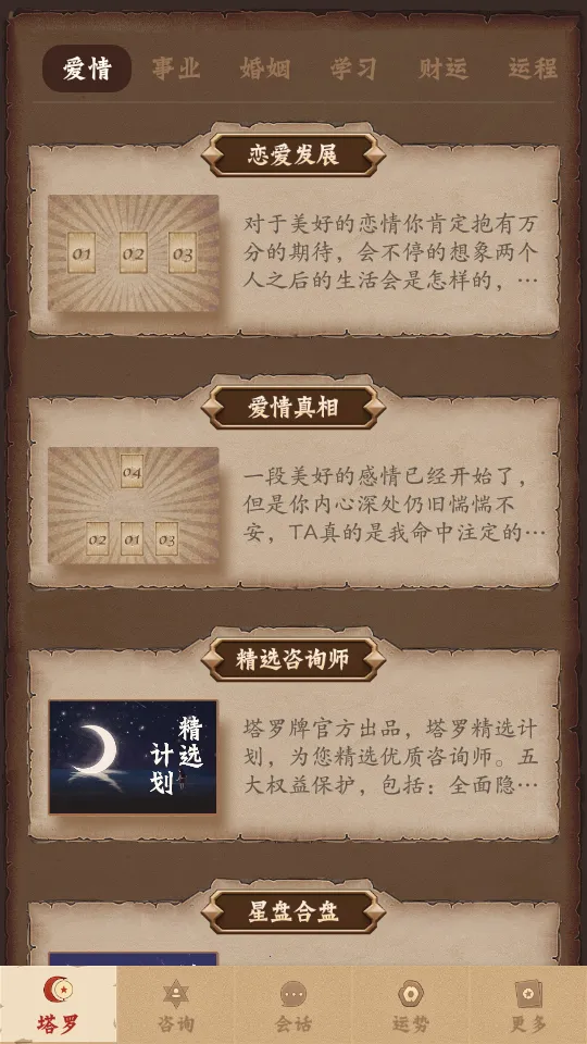 2. 零基础友好:内置塔罗学习与详细解析,方便新手快速上手。