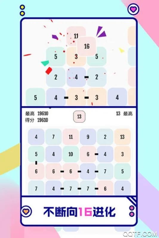 向16进化是一款极简主义益智游戏,玩家在回合内合并相同数值方块使其进化。玩法简单易上手,老少皆宜。有多种道具,画面精美。含多种模式,可与全球玩家比拼,还能锻炼脑力,趣味闯关。