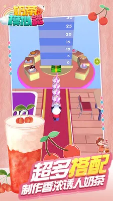 奶茶模拟器是一款结合饮品调配与跑酷元素的休闲游戏。玩家需在模拟吧台中按配方调制奶茶,并通过横向跑酷收集食材资源,不断升级挑战自我。游戏中提供丰富的配料选择和多样的玩法体验,让玩家享受创意调配与轻松娱乐的乐趣。