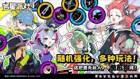 吉星派对是款超有趣的联机派对游戏。它最多支持4人同玩,有着恶搞卡通画风,乐趣十足。游戏里角色众多,各有专属技能属性,靠卡牌对战攻击。各种随机事件增加了不确定性,像棋盘上会有无差别攻击玩家的中立生物。可与好友组队合作或对抗,全球匹配实时多人在线。融合回合竞技与随机事件,每场对局都新鲜。玩家通过投骰子控制角色移动,用卡牌击败对手,还能解锁更多玩法,快来享受这刺激又欢乐的派对吧!