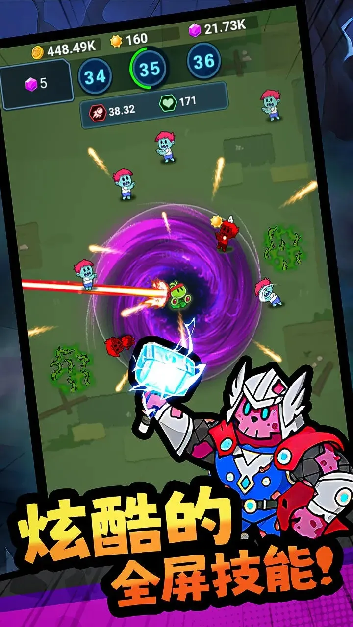 4. 技能酷炫 全屏轰杀:植物不仅自动攻击,还能释放炫酷大招,横扫僵尸,带来极致割草快感。