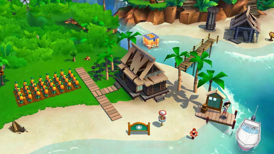 不仅能种植热带作物、饲养动物、建造海边客栈和小岛作坊,还有探索模式,可去森林探险、海边钓鱼,发现珍贵食材和道具。能与其他小岛展开贸易,用贸易船交易物品,如鸡蛋不足可购买,菠萝过多可出售。还有全新小游戏登场,赢取珍贵小岛资源和金币宝石等专属奖励。