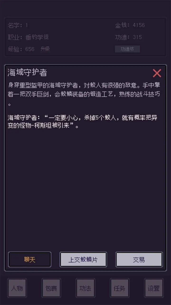 这款文字冒险游戏令人眼前一亮。以文字贯穿全程,玩法丰富多样。通过垂钓不仅能获道具,还能体验独特的功德设定,好人得好报。海域广阔,鱼类品种各异,每次垂钓都有随机事件,奇遇层出不穷。其画面虽有优劣,但钓鱼和战斗系统完善,宠物系统独特。简单操作界面却能展现海底神奇世界,高级文字功底带来独特魅力,让人沉浸其中,享受探索大海的冒险乐趣,是一款值得尝试的游戏。