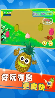 2滑动切割可爱水果,操作简单爽快,同时炸弹会扣分,闹钟可增加时间,巧妙平衡了风险与机遇,增添游戏趣味性。