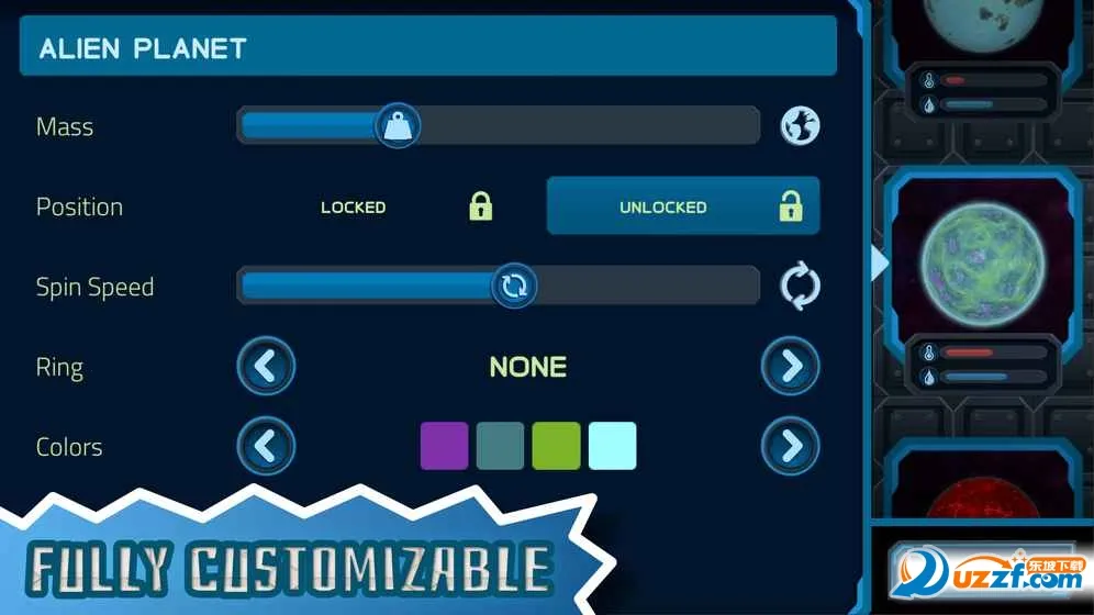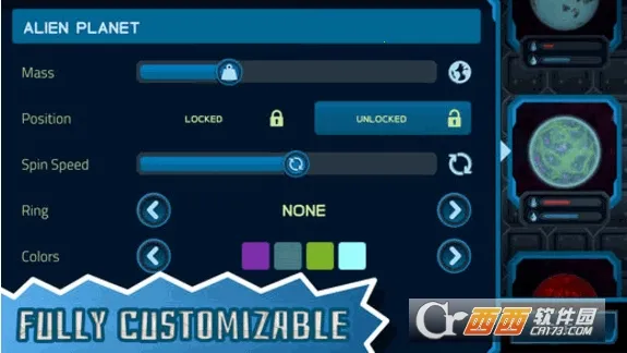 2. 准备了众多星球,加入星系调整属性,可建设庞大星际模型,规划星体运动路线,让模拟生态的星际版图自然运作。