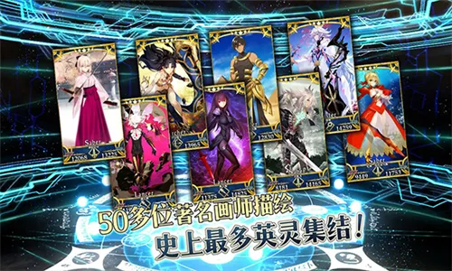 2. 史上最多英灵集结:可召唤包含多部知名Fate作品中的经典角色,以及多位FGO首创英灵与新职阶,跨越时代展开命运羁绊。