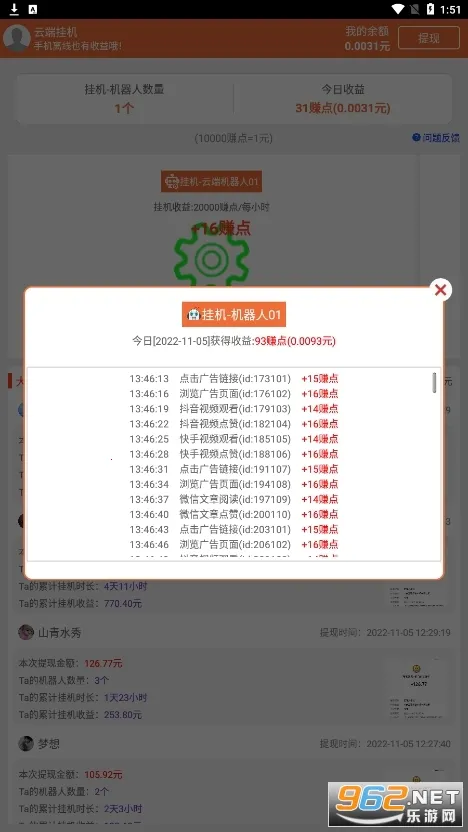 云端挂机最新版2026是一款高效便捷的挂机赚钱应用。提供多样任务,支持自定义挂机时间,无收入上限。具备强大离线挂机功能,有root权限,全天候服务,还能无限开户,无广告干扰,操作简单易上手。