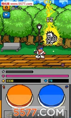 1. 经典格斗玩法:传统街机风格,两个按钮控制拳击和脚踢,击杀怪物积累进度条获取汽车零件修复城市,玩法经典又有趣。