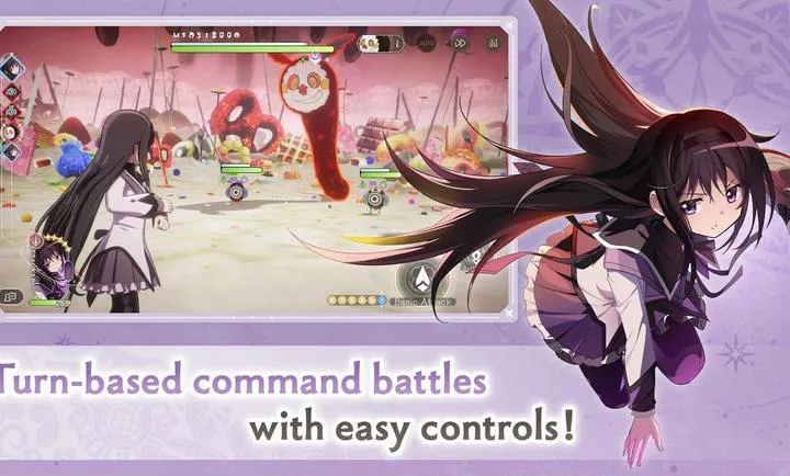 3. 简单操作与精彩战斗:通过简单操作和强大电影技能动画玩基于回合的指挥战斗,还能混合匹配魔法少女创建梦之队,利用角色和元素亲和力优化战斗力,与强大魔女作战。